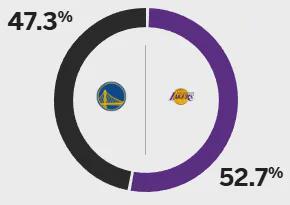 賽前,ESPN對本場比賽進(jìn)行了預(yù)測:缺少了詹姆斯的湖人仍是更被看好的一方,勝率52.7%,而勇士為47.3%。